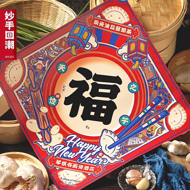 Wonderful hand resurgence 2022 Fu word door sticker New Year decoration couplet fighting party Spring Festival home creative Tiger New Year new year