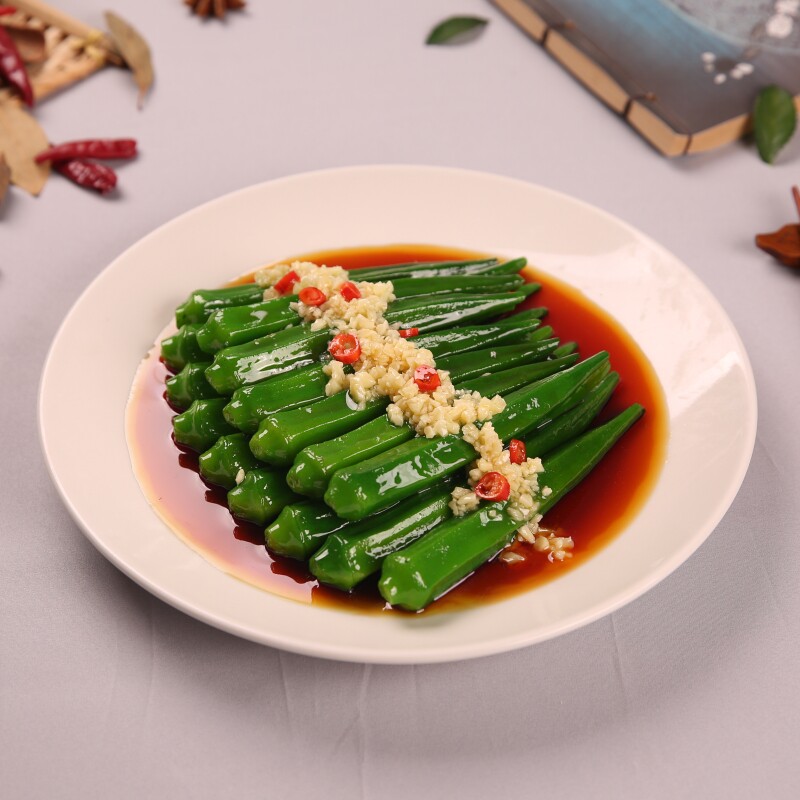New products in stock simulation food model stir-fried okra food sample display resin dishes film and television props fake dishes