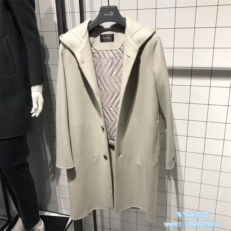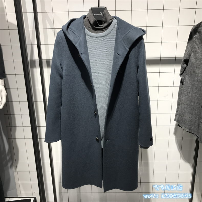 Mind Bridge Men's Winter Korean Fashion Hooded Mid-Length Wool Coat MSCA710E-3680