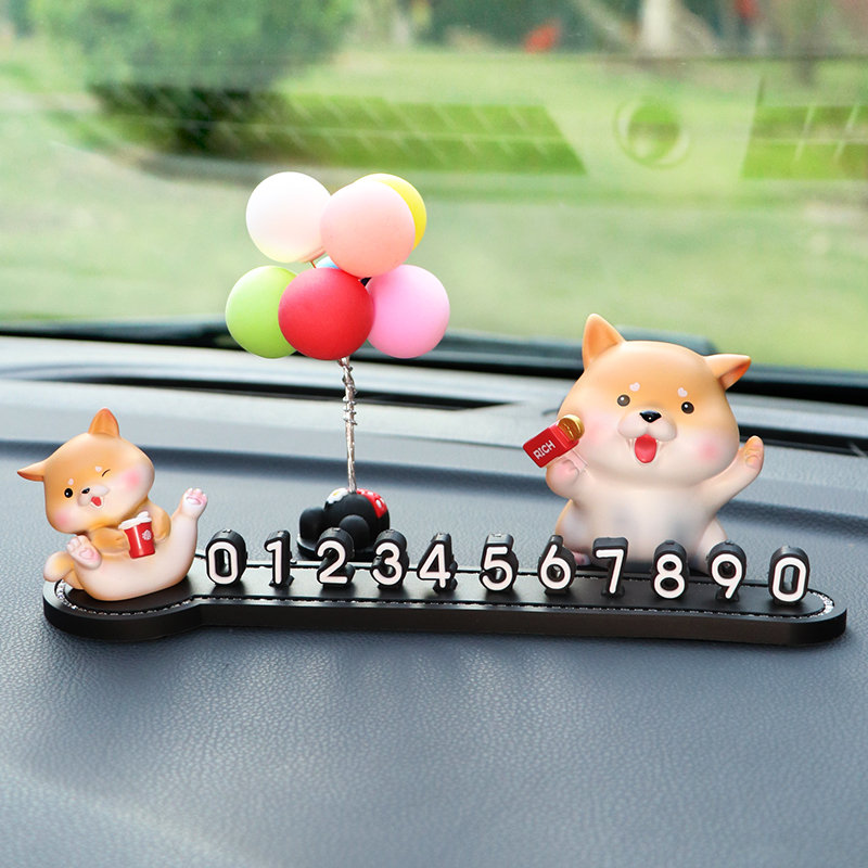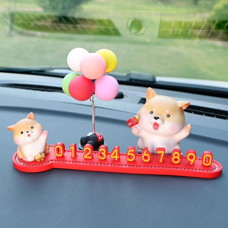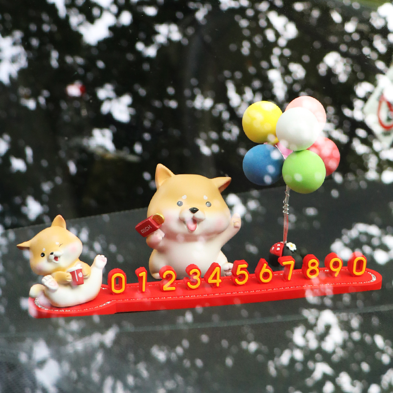 Car cartoon creative parking card cute small Shiba Inu lucky dog ornaments car temporary moving car moving number plate