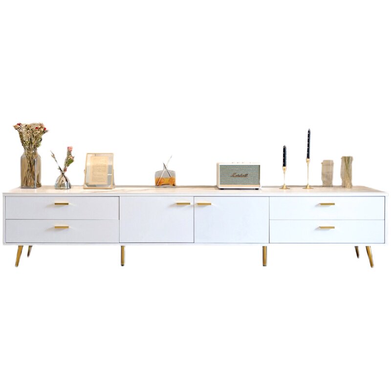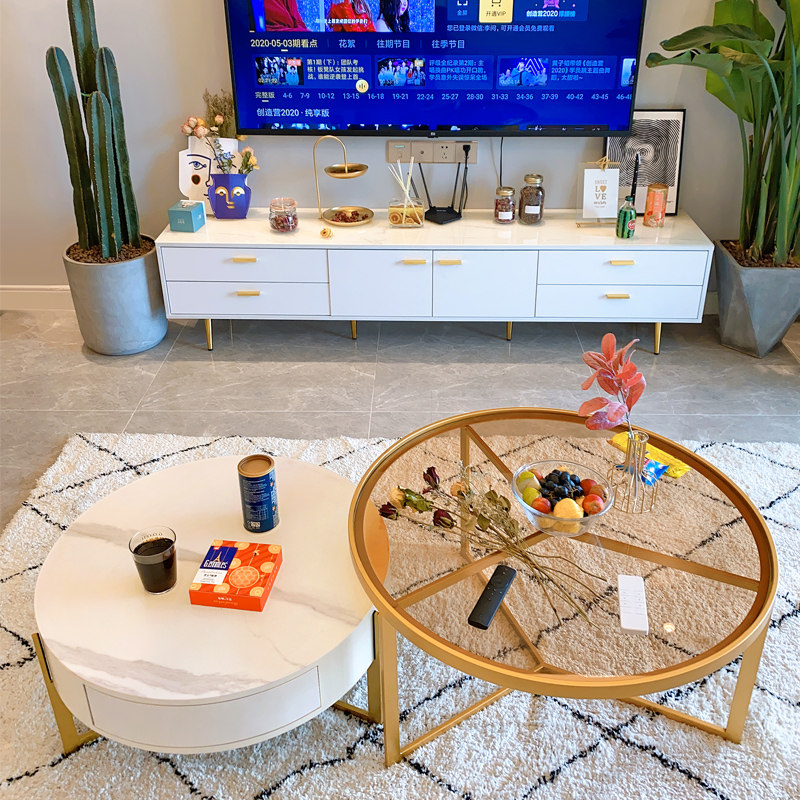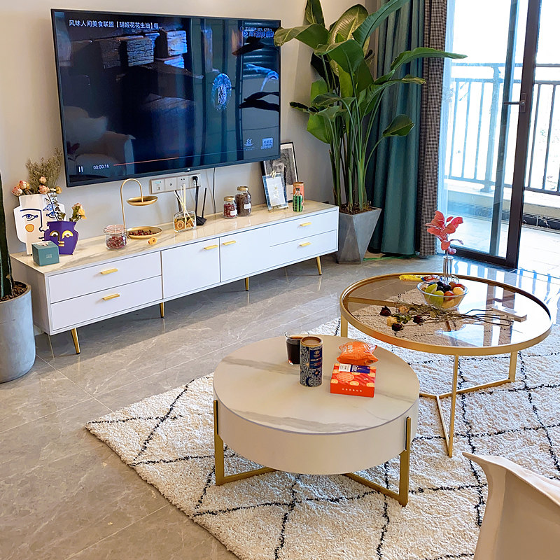 Nordic light luxury slate TV cabinet coffee table combination simple small apartment living room white 1 8 meters post-modern floor cabinet
