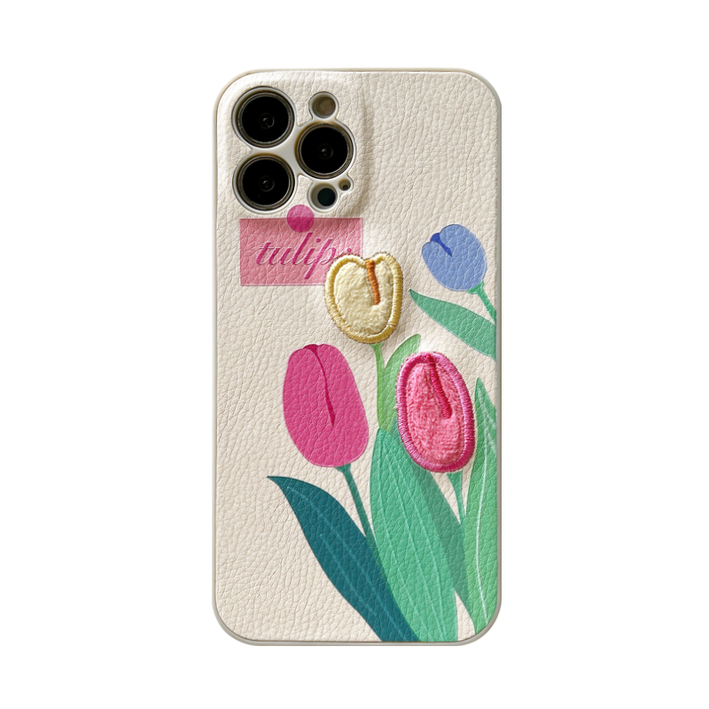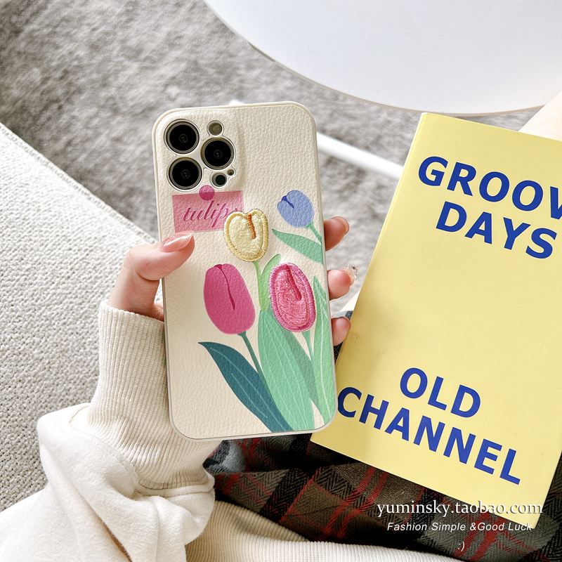 ins embroidery tulips apply iPhone12promax apple 13 11 mobile phone protection shell xsxr small crowd 8plus