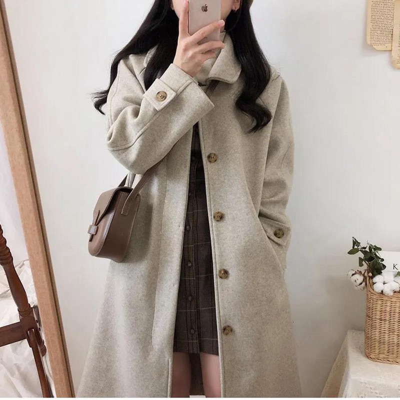 145 small woolen coat women autumn and winter 150 short tall wearing a medium and long version of thickened woolen jacket xs