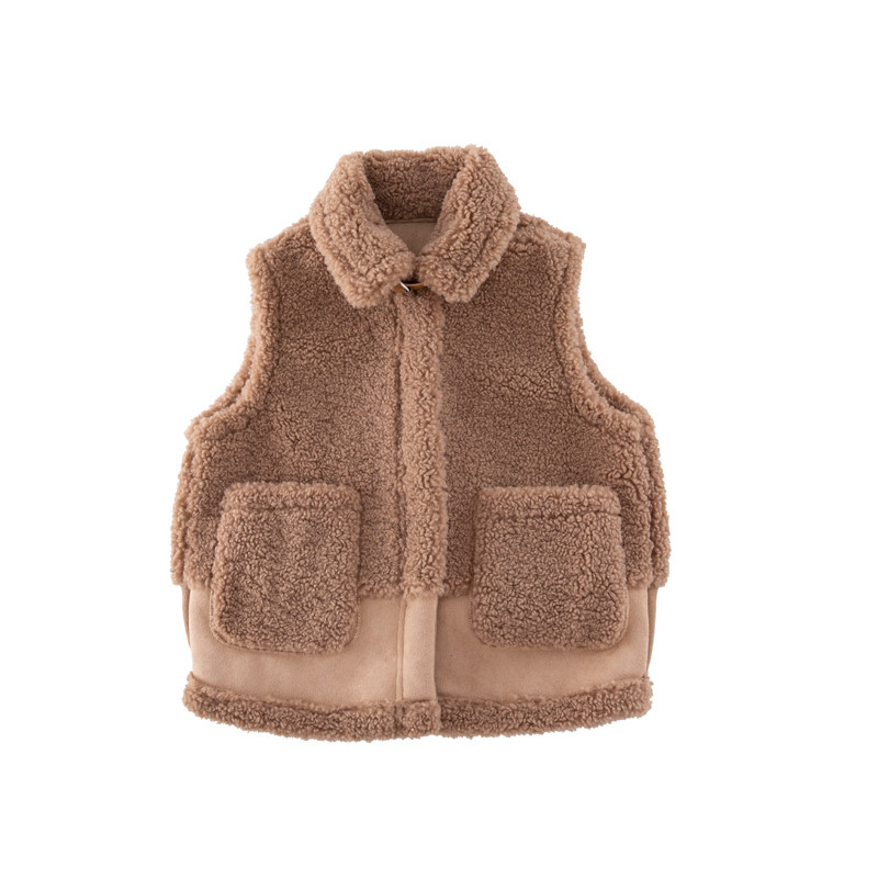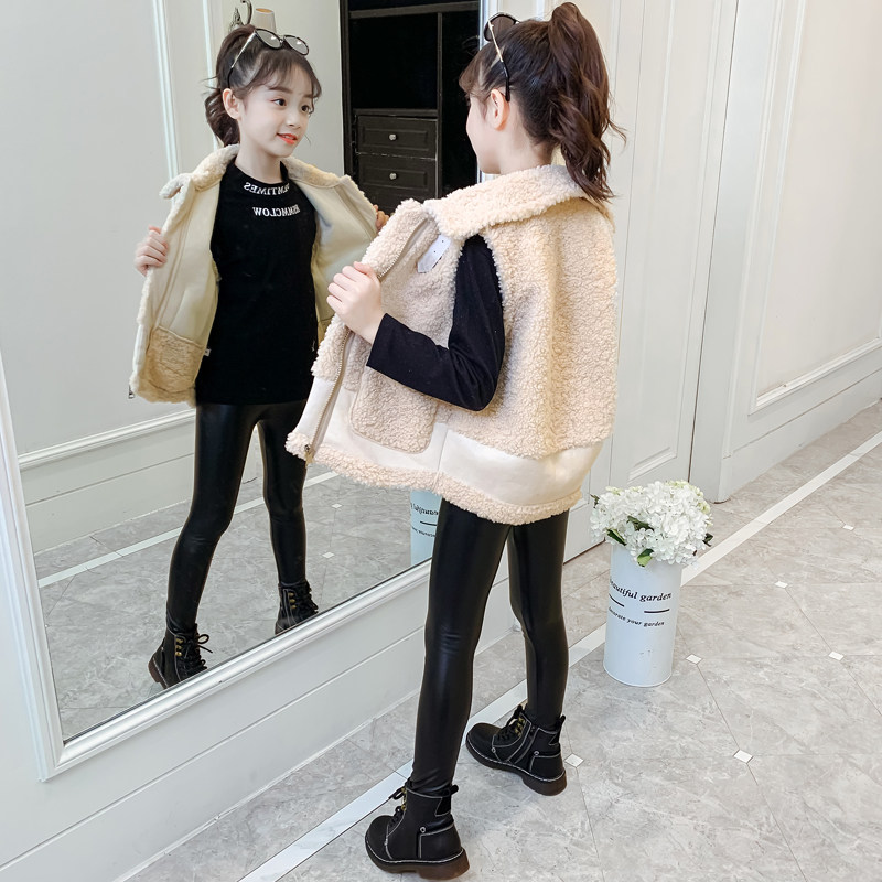 Girl's waistcoat spring and autumn foreign wearing Korean version of large children's autumn and sheep lamb Mao's new vest 2022 Children's waistcoat wave