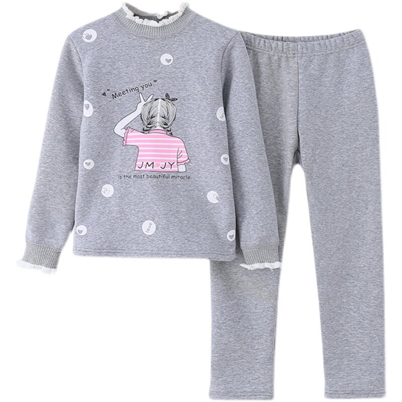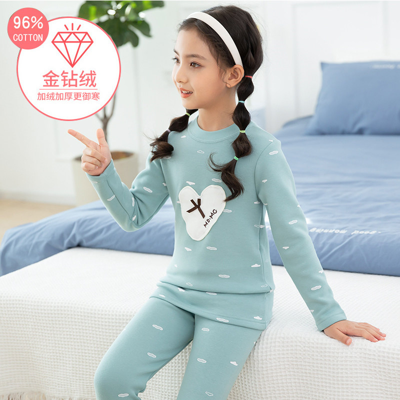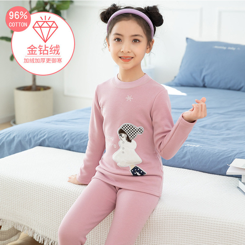 Girls' fleece underwear set middle and big children's winter thickened cotton long johns long johns girls children's thermal clothing high collar - Taobao