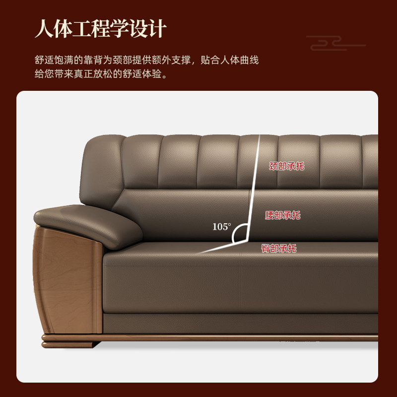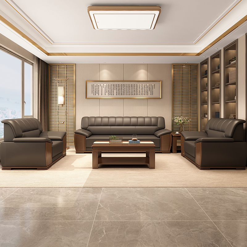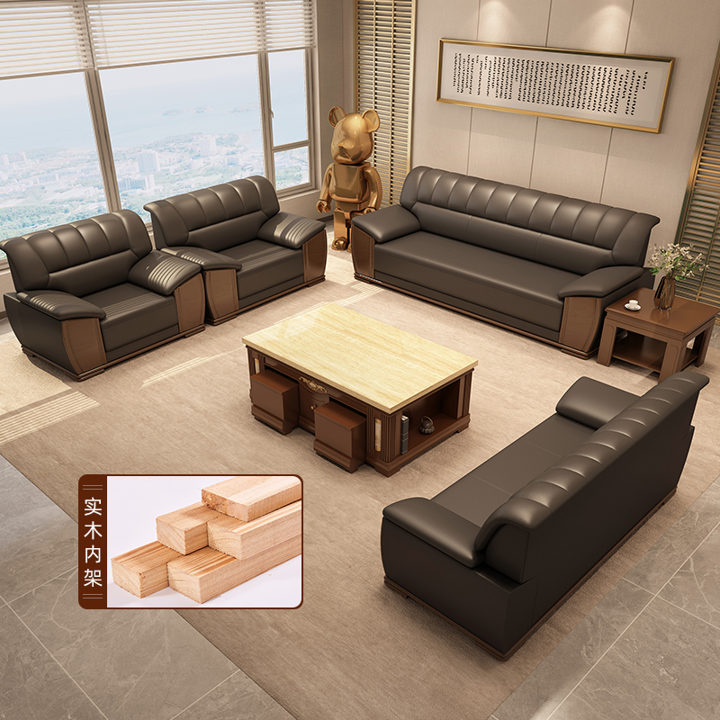Manager Room Office Sofa guests in talks Three-place high-end business genuine leather solid wood Reception furniture tea table combination
