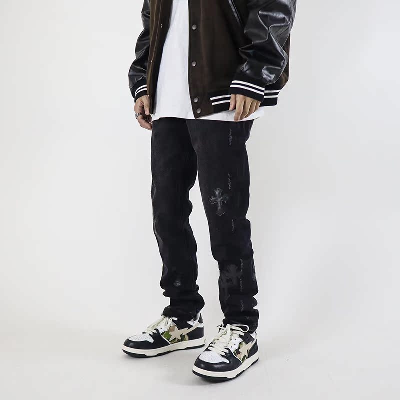 POCKET INS European and American high street American pants straight loose all-match street cross jeans tide brand men