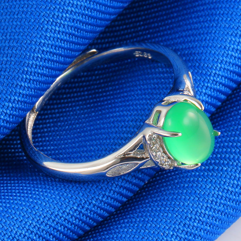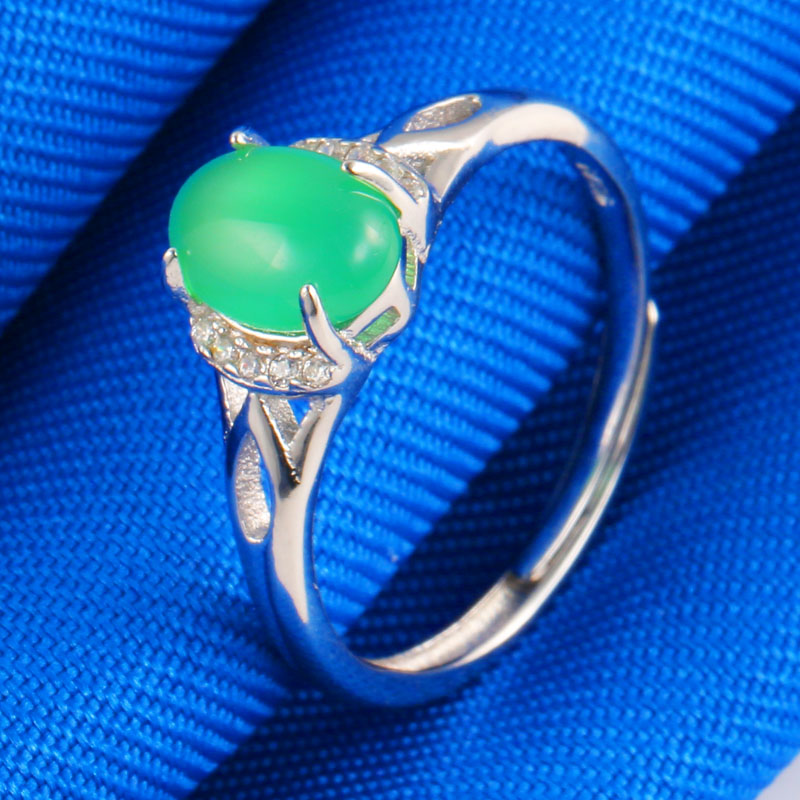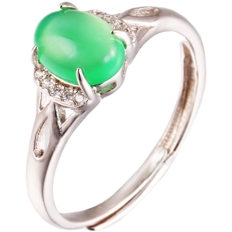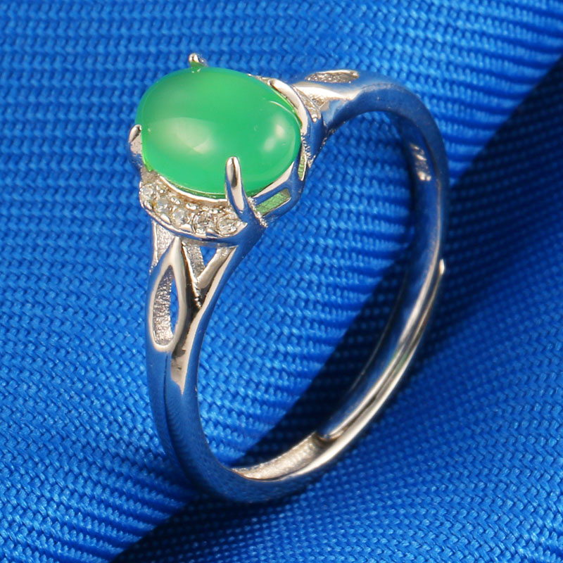 Platinum Ring Women's pt950 White Gold Inlaid Jade Ring A Goods Green Jade Send Wife To Mom Live Mouth