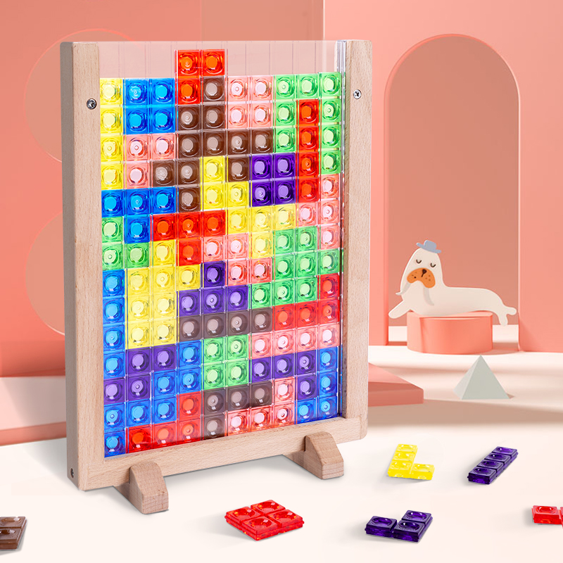 (Solid Tetris block) Wood frame (Cubist Tetris) Iron box Changed Face Magic Square Wood Frame Vigorous stack Lewood frame 180 pieces creative jigsaw wood frame track training wood frame iron