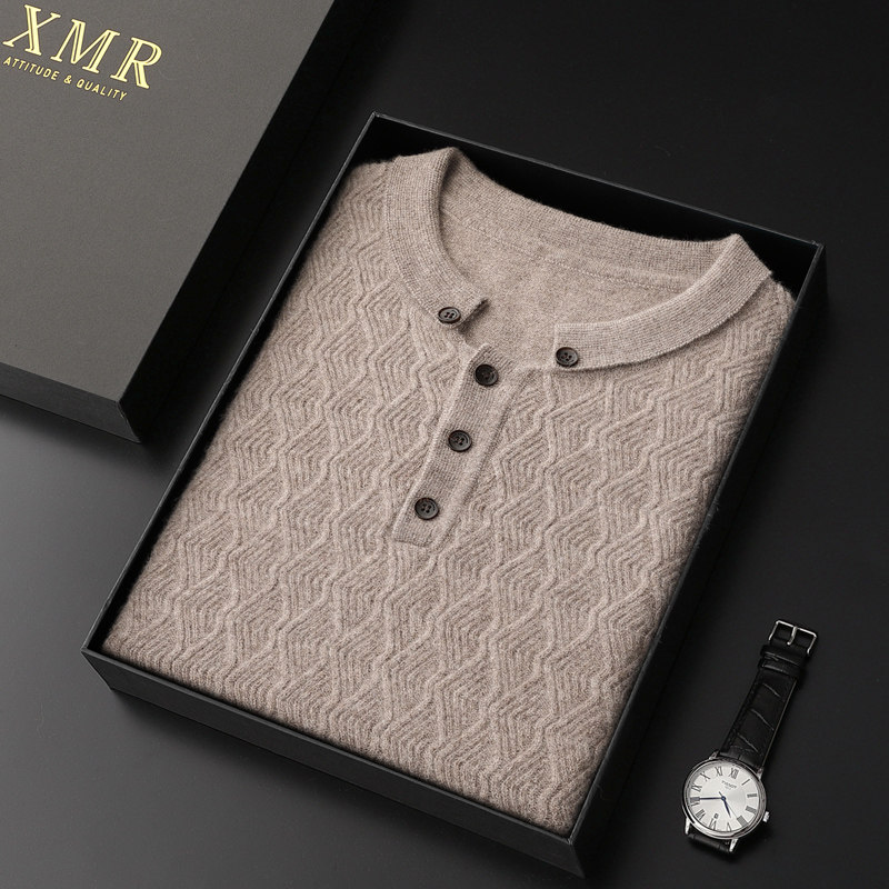 Retro Little crowdcashmere sweatshirt male 100 pure cashmere Polo collar Long sleeves Knitted Sweatshirt Winter Warm Mountain Cashmere Sweater