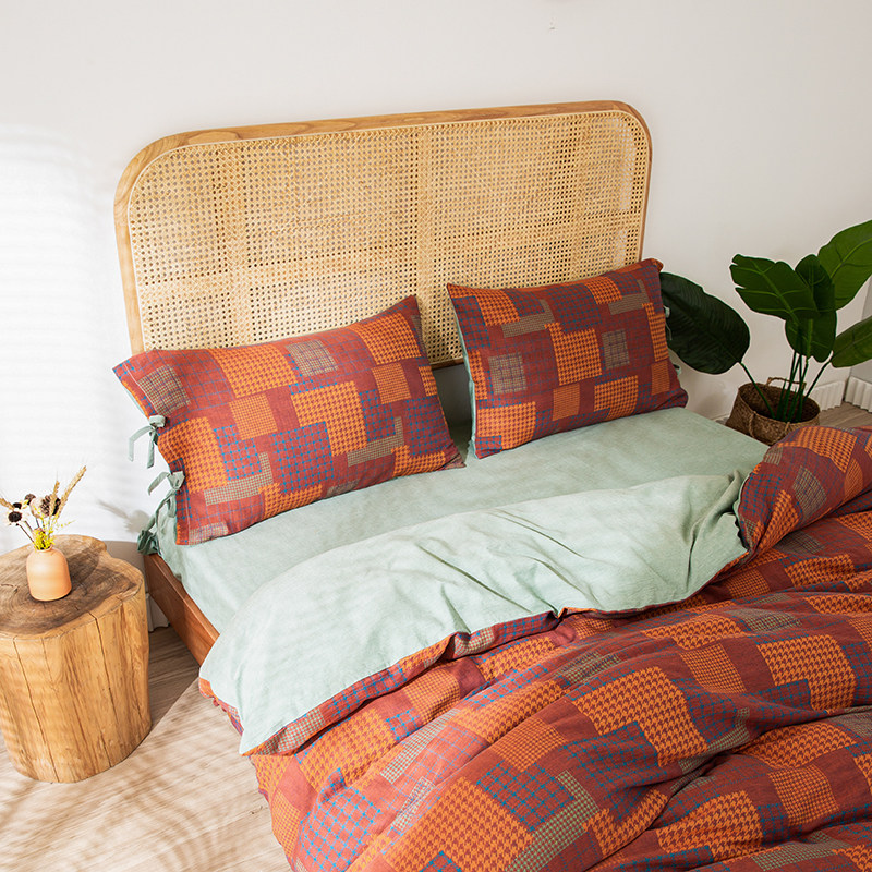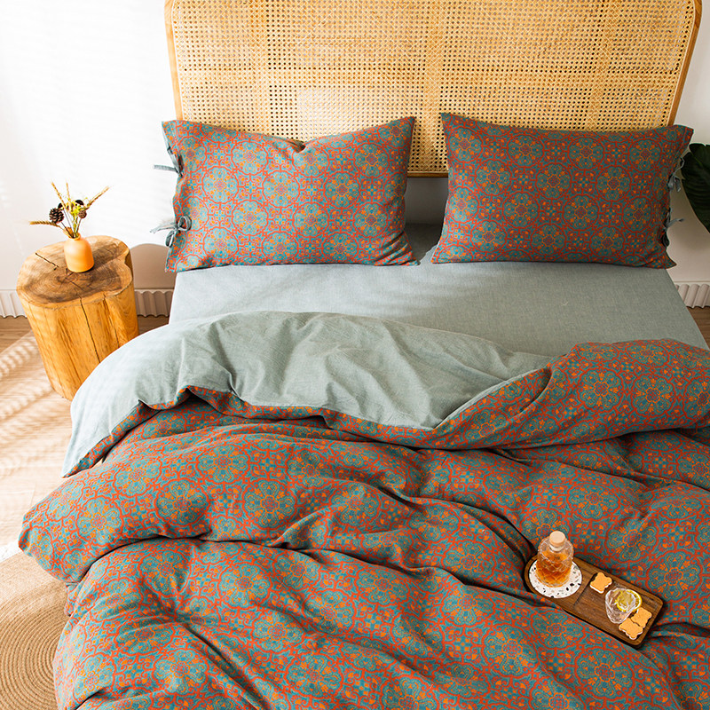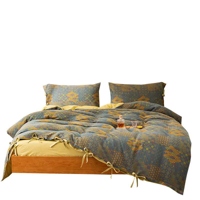 Nordic ins wind ~ A type of mother and baby level double layer gauze four sets 100 full cotton pure cotton nude sleeping bed bedding linen