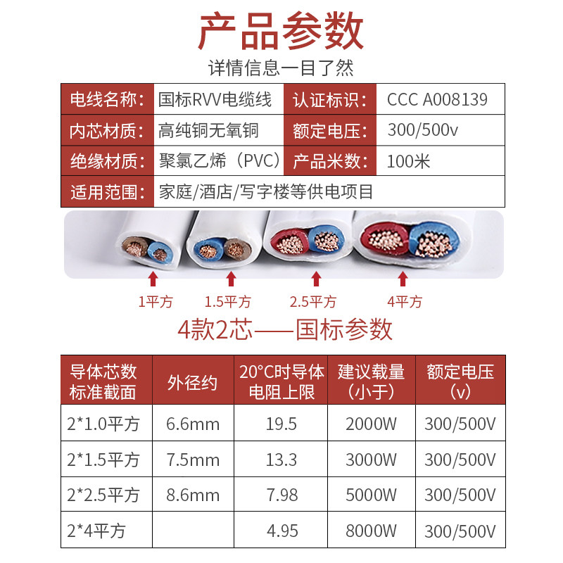 Wire 2 5 square national standard 1 5 4 sheath wire 2 core pure I copper core soft wire outdoor cable