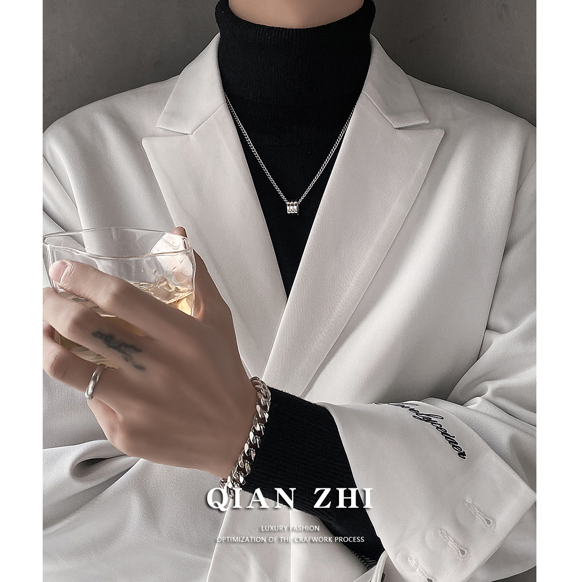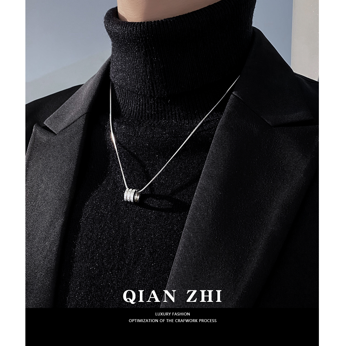 Men's necklace men's trendy niche design sense high-end titanium steel pendant hip-hop clavicle chain tide brand wild thick cotton T chain