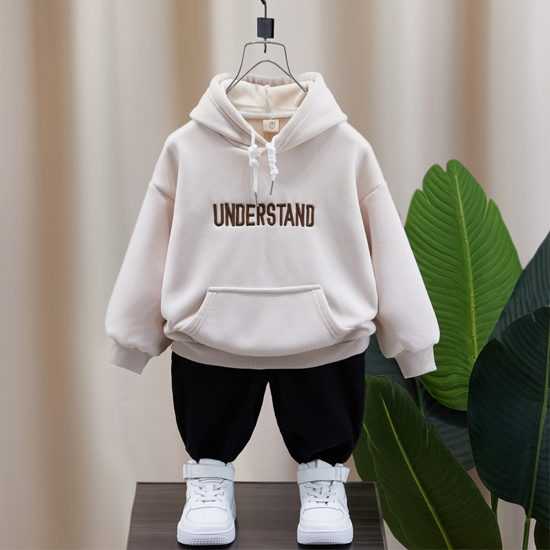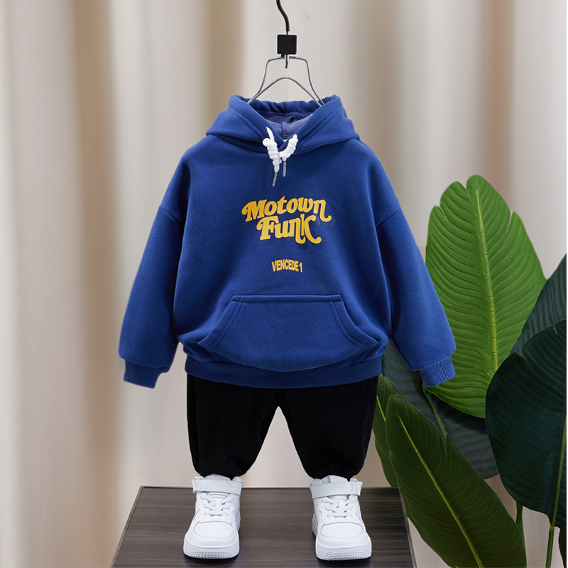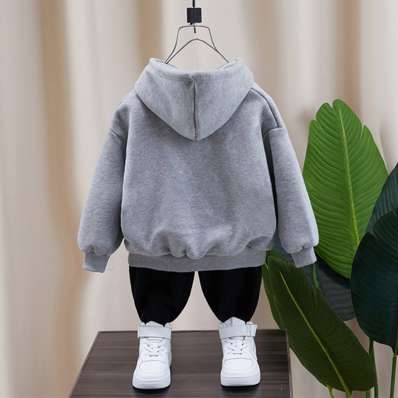 Boys sweater plus velvet integrated velvet 2021 new children's hooded thickening autumn and winter children's winter gray top