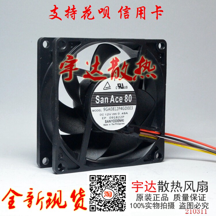 Original Sanyo Sanyo 9GA0812P4G003 12V 0 48A 8025 four-wire PWM cooling fan