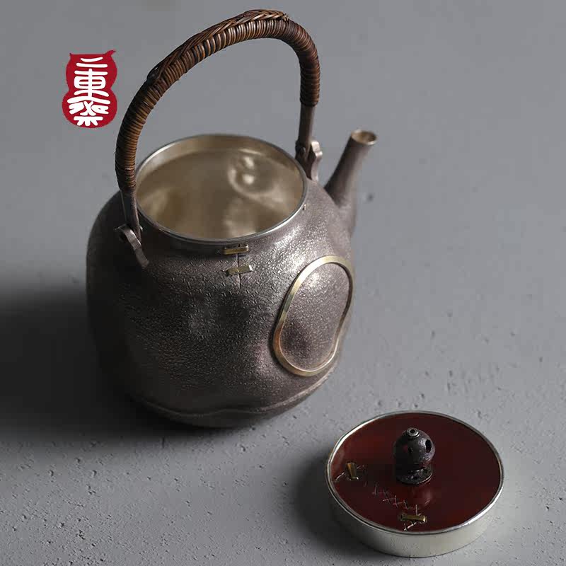 One East fasting silver pot pure silver 9999 tea silver pot pure handmade one beat tea road home small silver pot silver tea set