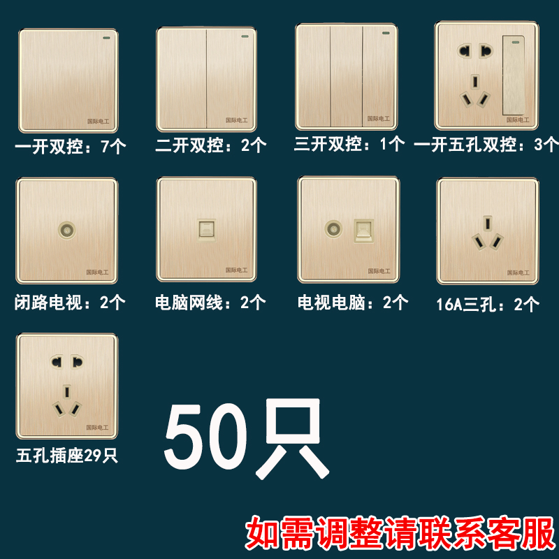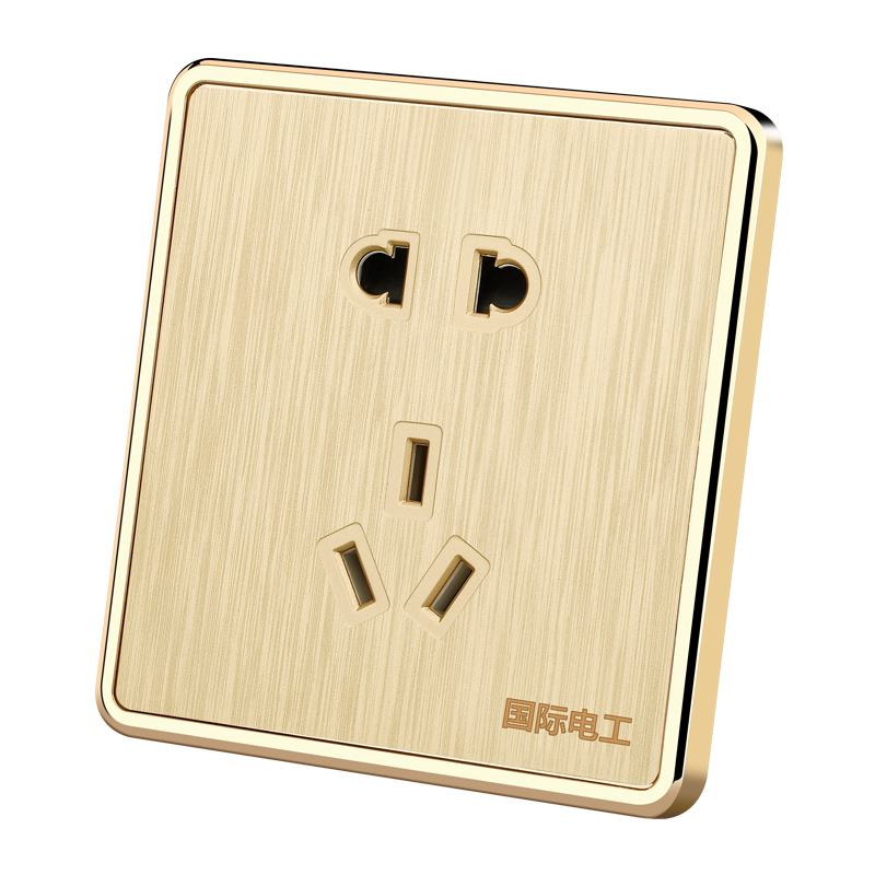 International Electrician Wire Drawing Champagne Golden Switch Socket Panel 86 Type Suit Home Concealed open 5-hole socket