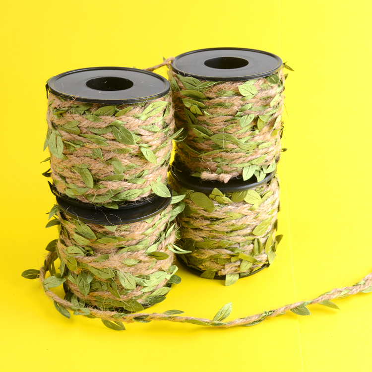Green forest leaves hemp rope forest rattan weaving handmade diy kindergarten ring creation decoration with leaf rope