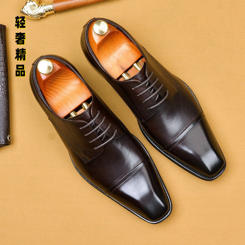 Three - connector business leather shoes men 2021 new leisure heads Englishmen shoes retro - air outfit men's shoes