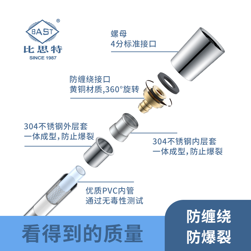 Explosion-proof anti-winding pvc shower shower hose water heater shower bath nozzle pipe universal 4-point shower throat