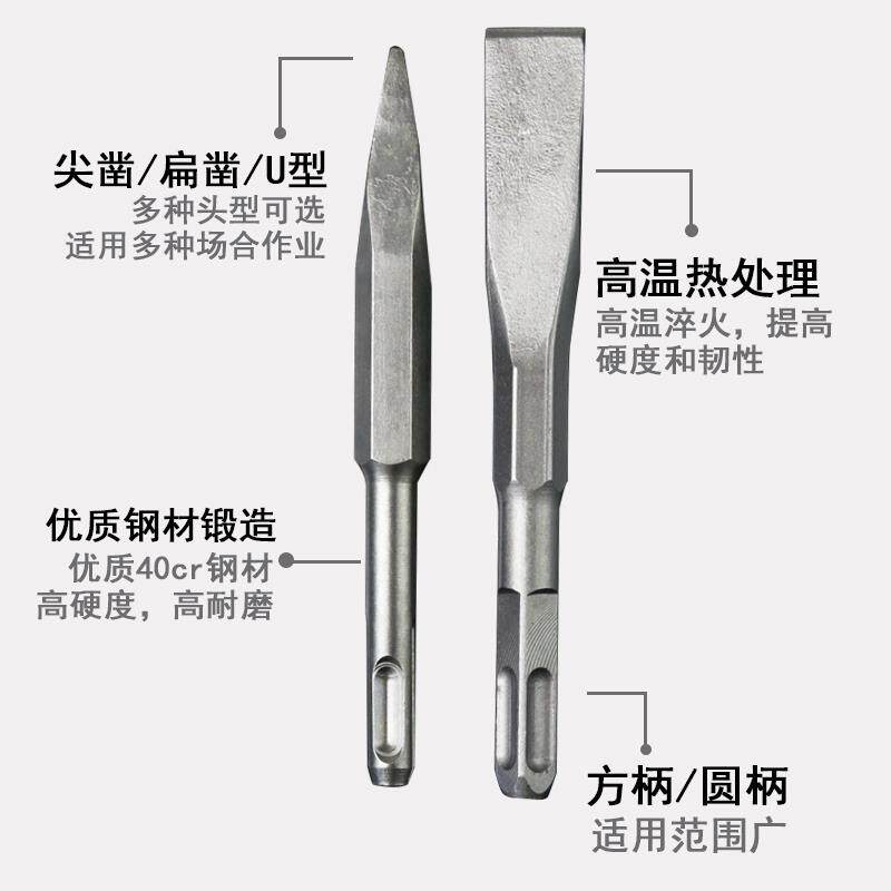 Concrete Electric Pick Chisel Tungsten Steel Alloy Ultra Hard Electric Pick Drill Hexagon Widening Flat Chisel Chisel Alloy Lengthened