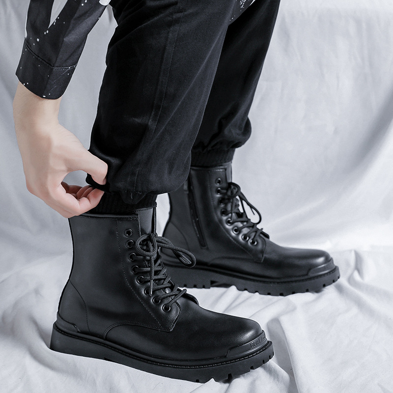 Martin Boots Man boots Men's Inron Wind winter gush leather Leather Tooling Boots Mid-Cylinder Locomotive Tide Shoes High Cylinder Leather Shoes