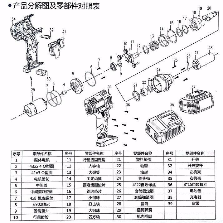 Industrial electric screwdriver accessories A3-6802 switch head shell 2106 shell battery shell square shaft motor rotor
