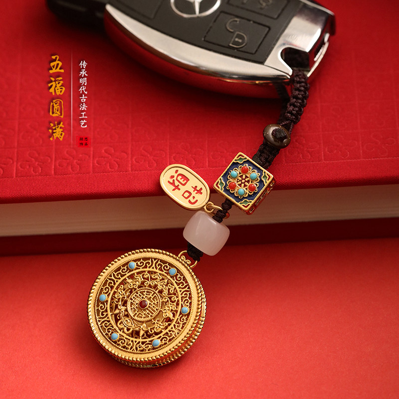 Ancient Fagin Wufu satisfactory car key buckle pendant upscale round card men's financial god Ping An bag hang sand gold hanging decoration female