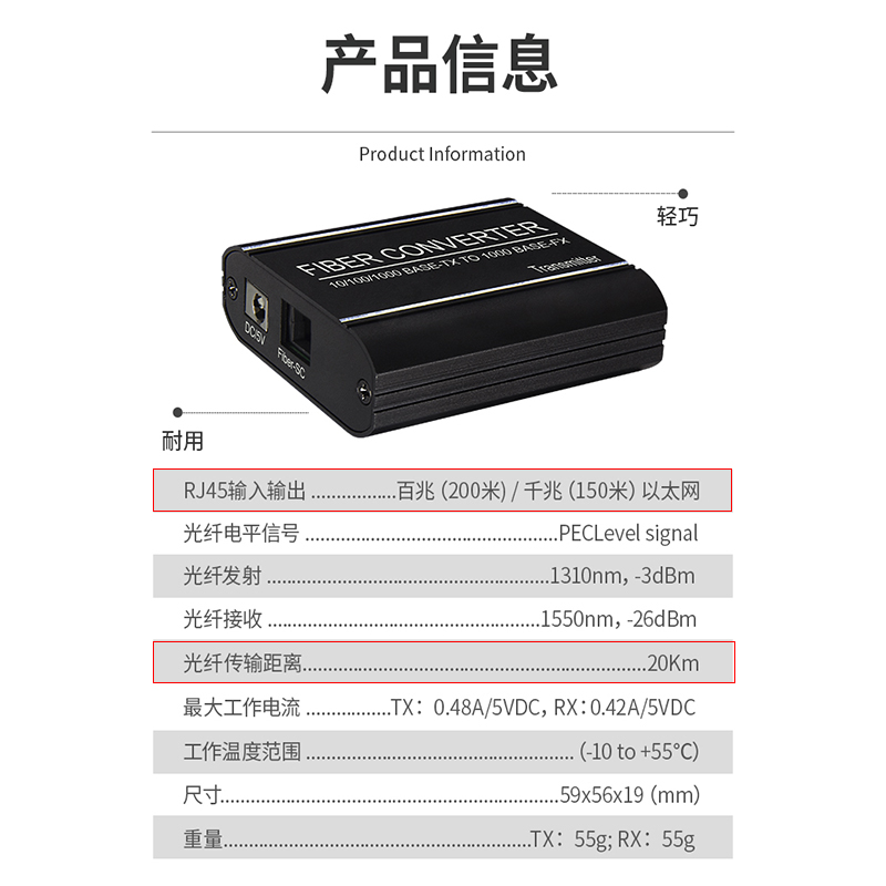 Single mode single fiber 1 light 1 electric one thousand trillion optical fiber transceiver 20 km with optical module monitor photoelectric converter 1 pair