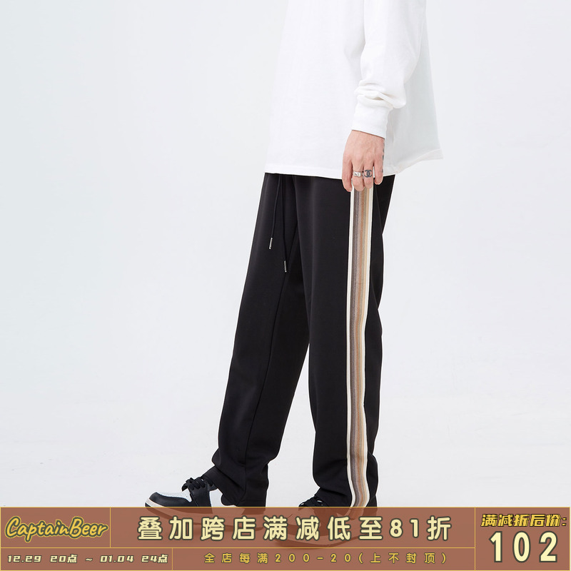 CTB beer captain all-match loose straight trousers men's American style side striped ribbon sweatpants drape casual