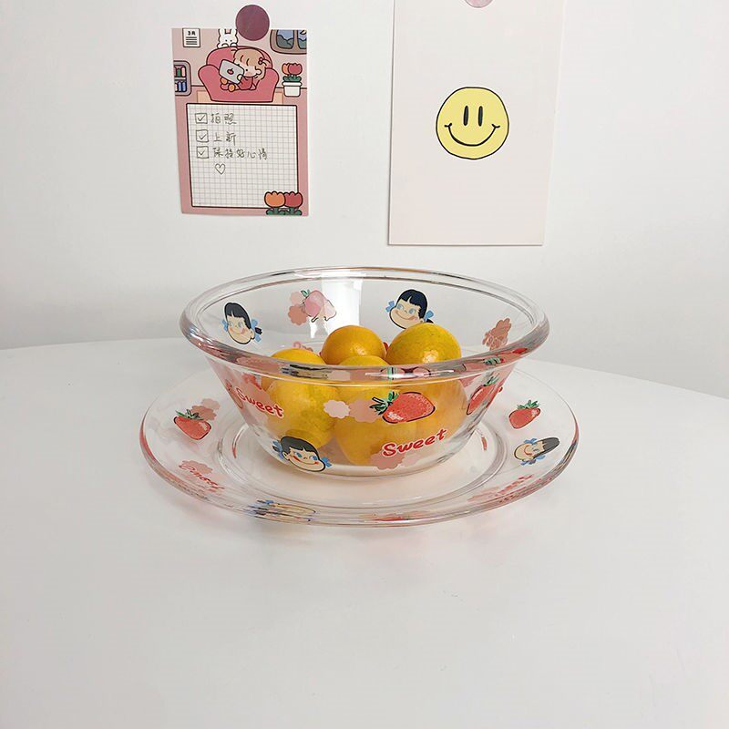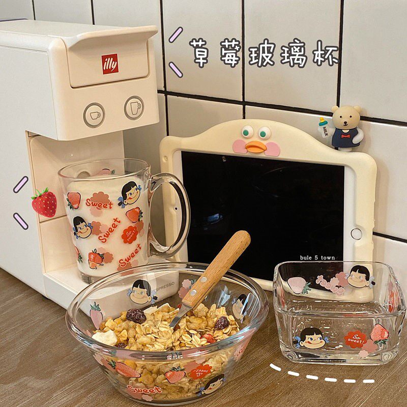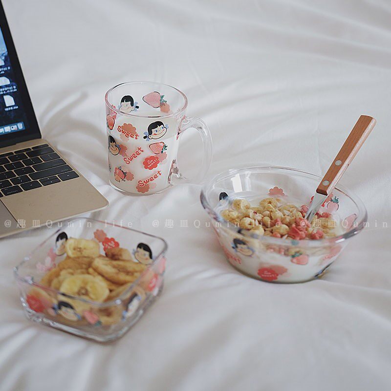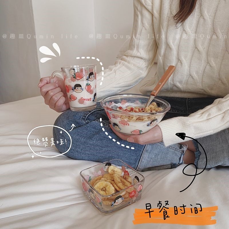 Fujiya Milk Girl Glass Bowl Cutlery Bowl Set Cute Dormitory Student Breakfast Bowl Cereal Bowl One Food