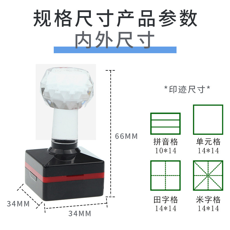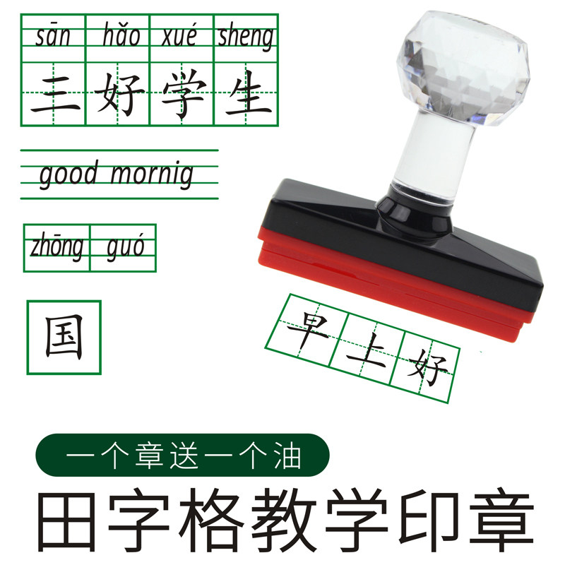 Green Pinyin Tian Character Seal Elementary School Students Multifunction three-field 4-4 Geo-seal Double Spelling Double Fields English Four-Four Six Fields Single English Cross Thread The Wrong Character First Grade Teaching Suit