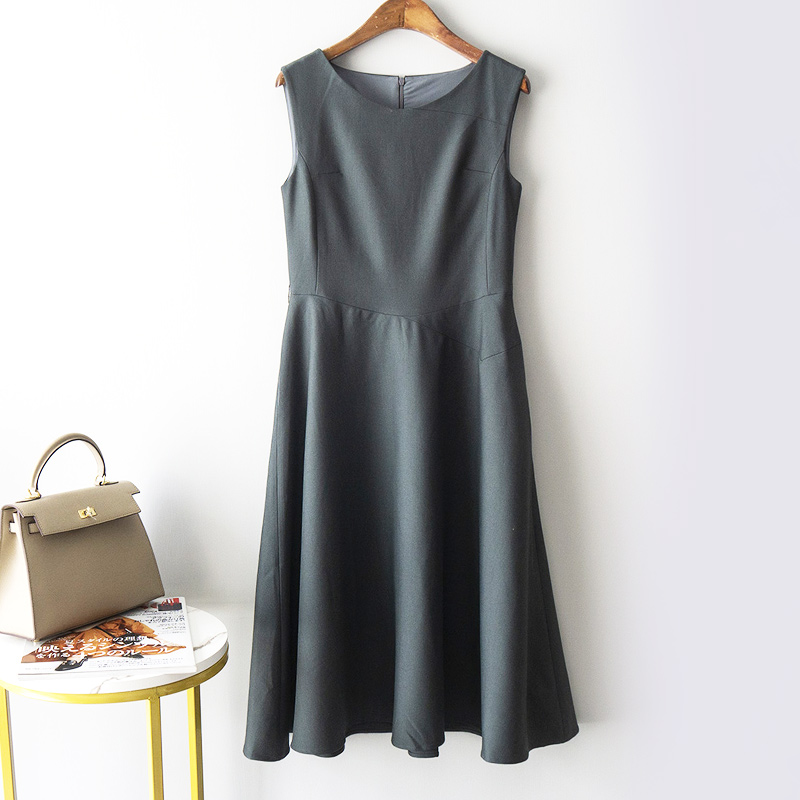 Velvet Jasmine Elegant Lady Temperament Customer Supplied Fabric Large Sleeveless Dress Simple Design High Waist Vest Dress