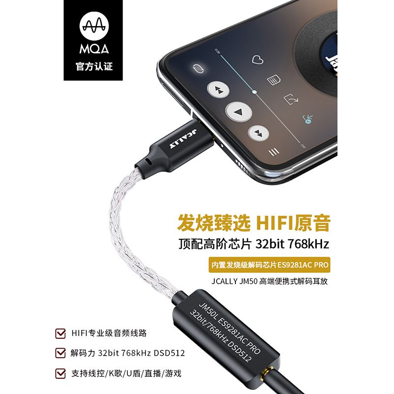 JCALLY Jieshi sound JM50L Apple decoding amp adapter head ES9281 small tail Lighting