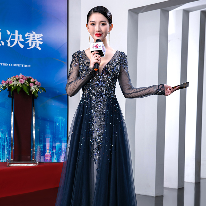 Evening dress skirt 2022 new women's long style elegant temperament luxury heavy industry banquet annual meeting dress niche high-end summer