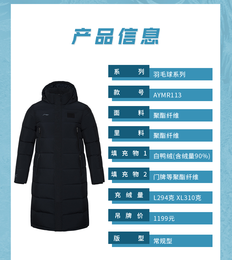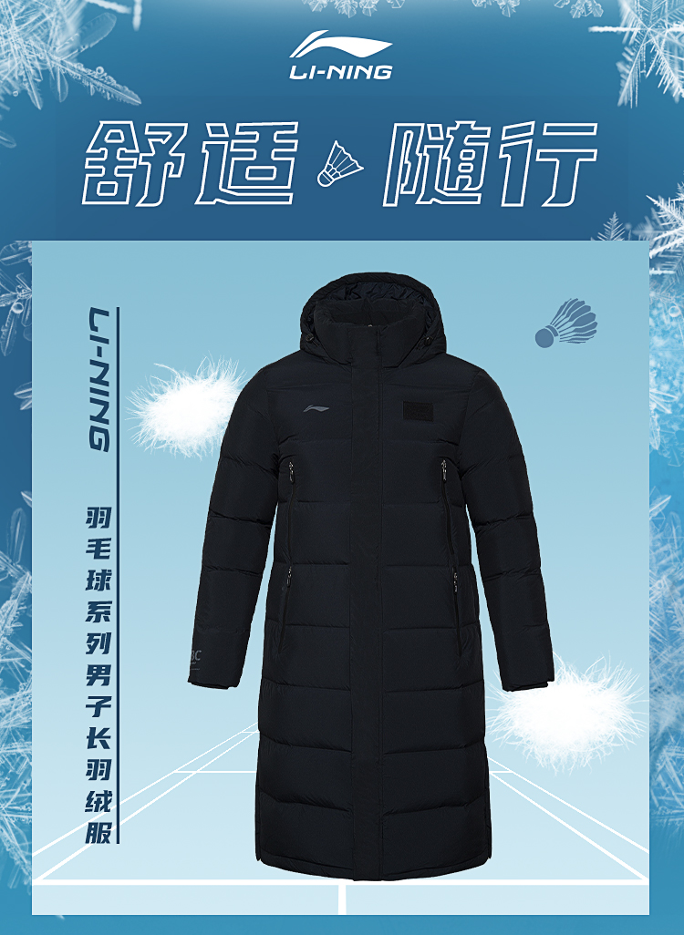 2021 Fall New Li Ning Men's Clothing Sportswear Sportswear Badminton Suit Long Version Casual Down Jacket AYMR113