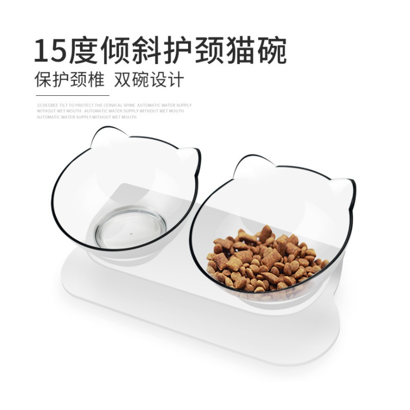 Cat Bowl Double Bowl Protect Cervical Spine Automatic Drinking Pot Prevention to Topple Cat Food Bowl