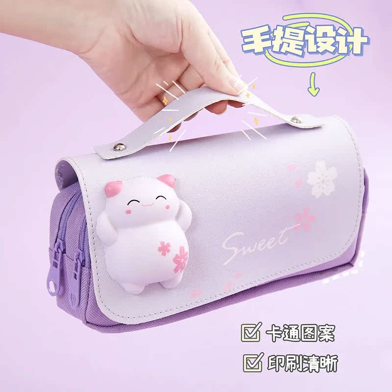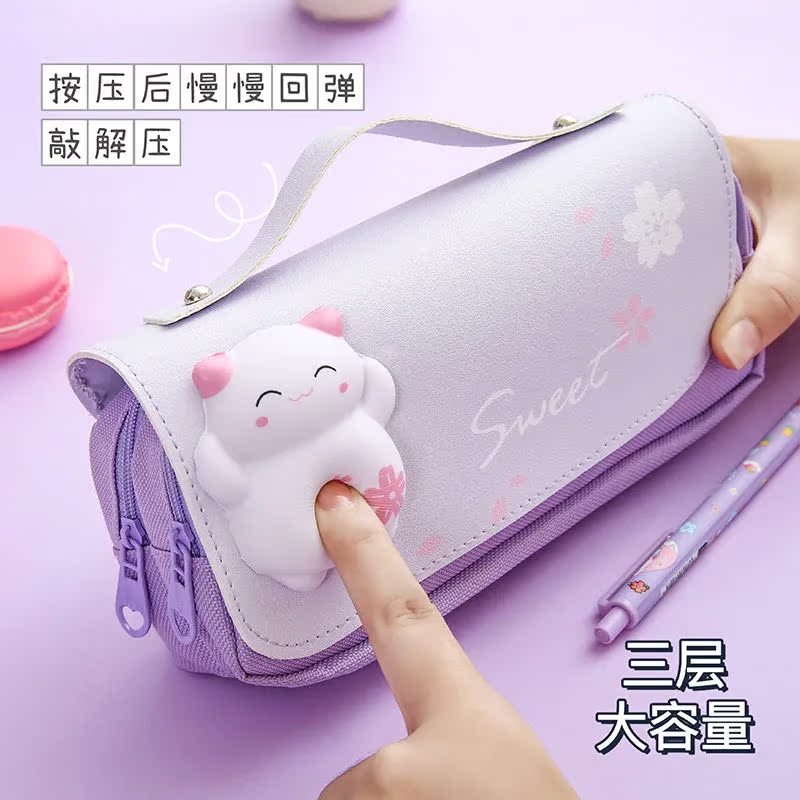 Internet celebrity double-layer decompression pencil case girl 3D primary school students decompression large-capacity multi-functional 2021 new stationery box ins style Japanese cute pencil case children's junior high school pencil case