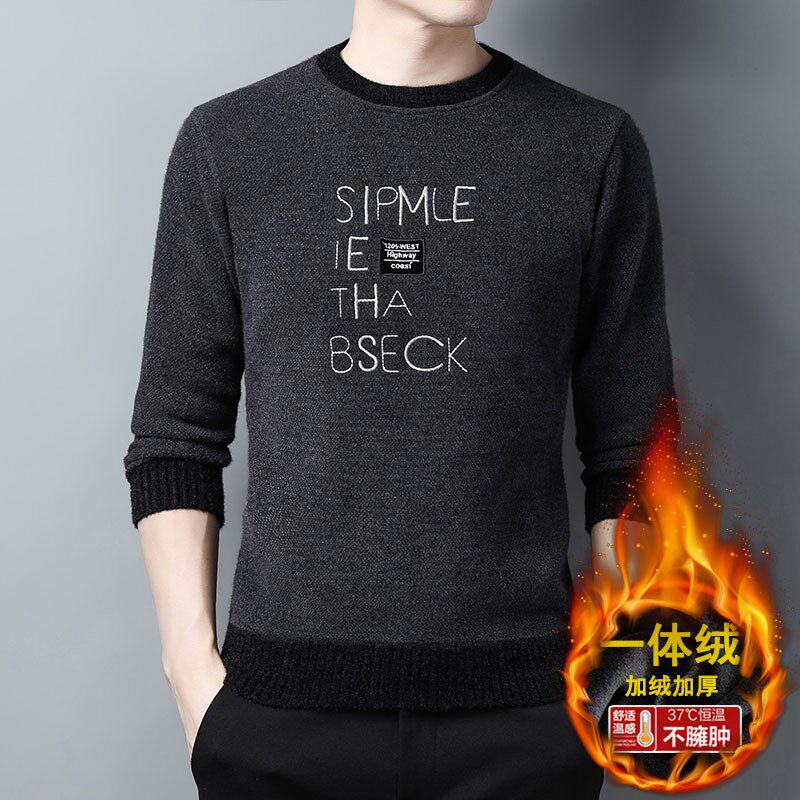 Winter thermal underwear men's upper body plus velvet thickening middle-aged father's close-fitting autumn clothes one-piece knitted bottoming shirt father