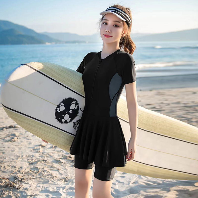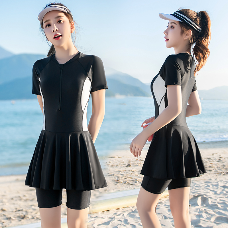 Large size swimsuit women's one-piece conservative fat mm 200 catties cover belly to show thin sports five-point pants swimsuit 2022 new