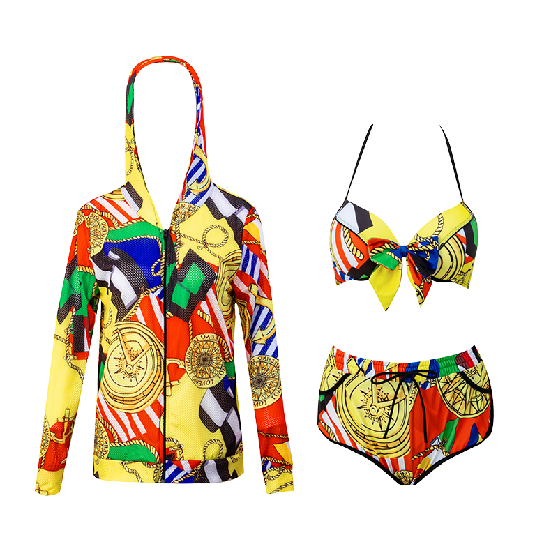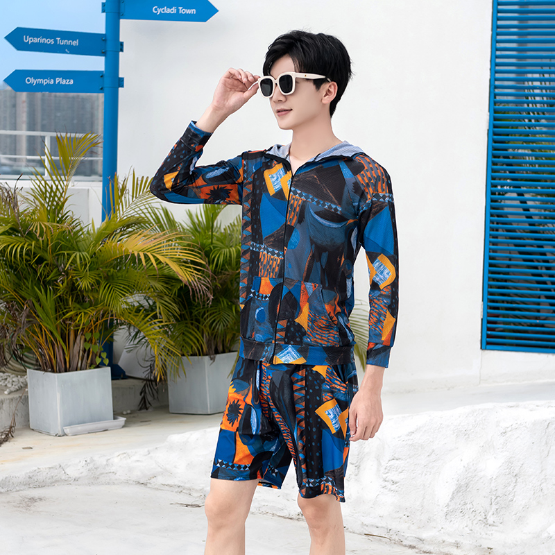 New couple swimsuit three-piece set split blouse sun protection long-sleeved boxer small chest swimsuit beach pants swimsuit