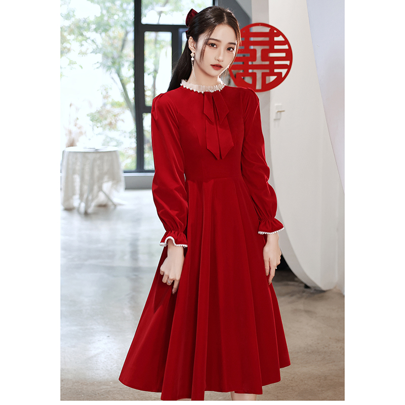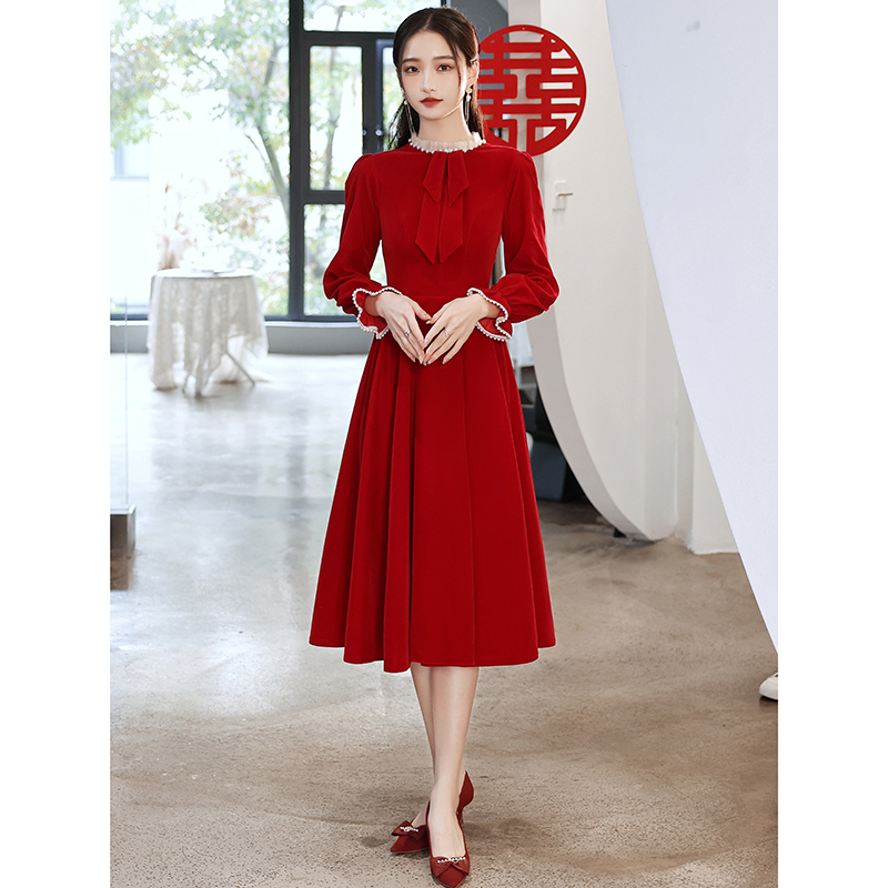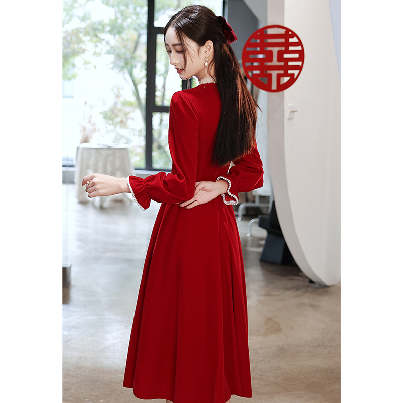 Toast to the bride 2022 new wedding wine red normally you can wear a small sub-back door engagement gown dress temperament