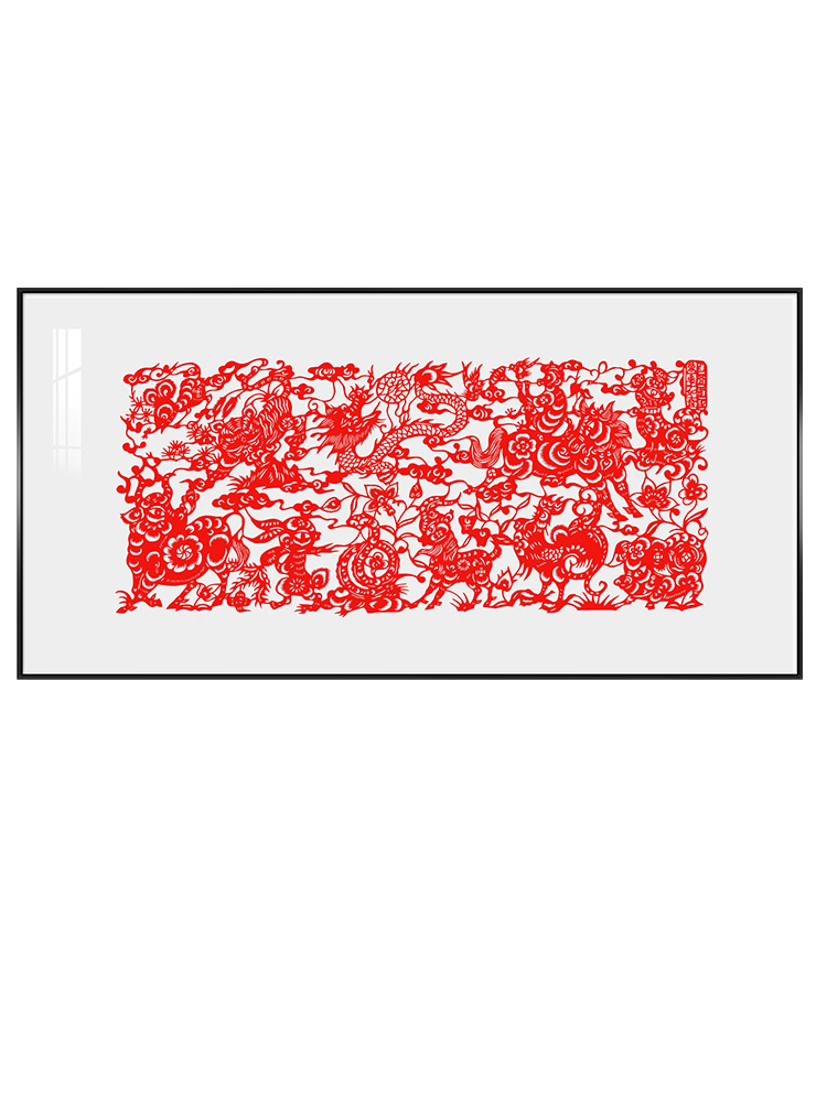 Xiang and zodiac cut paper decoration painting handmade Chinese wind art work living room creative sending elders gift non-relic