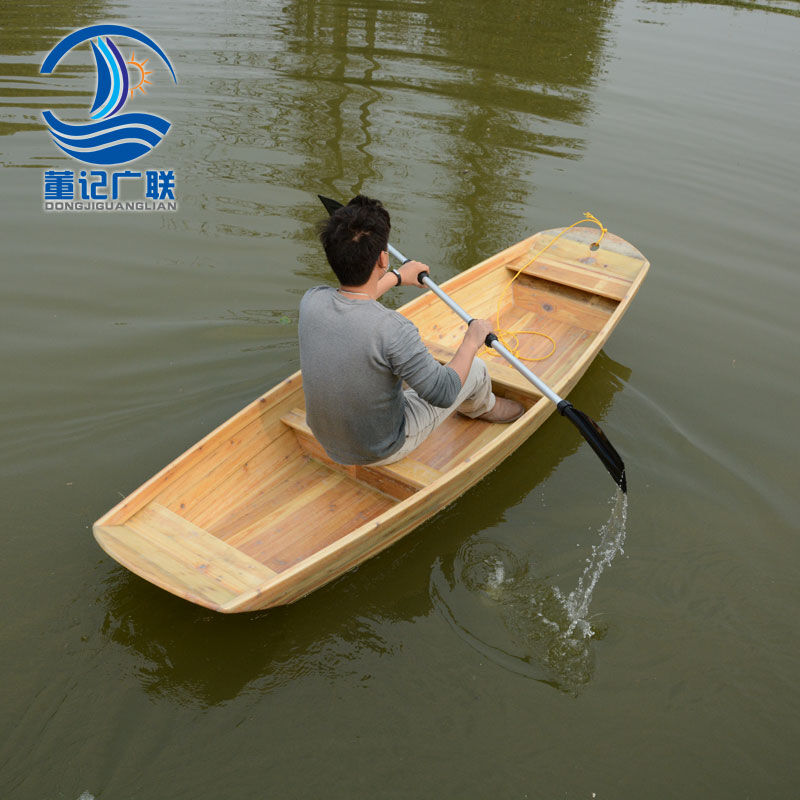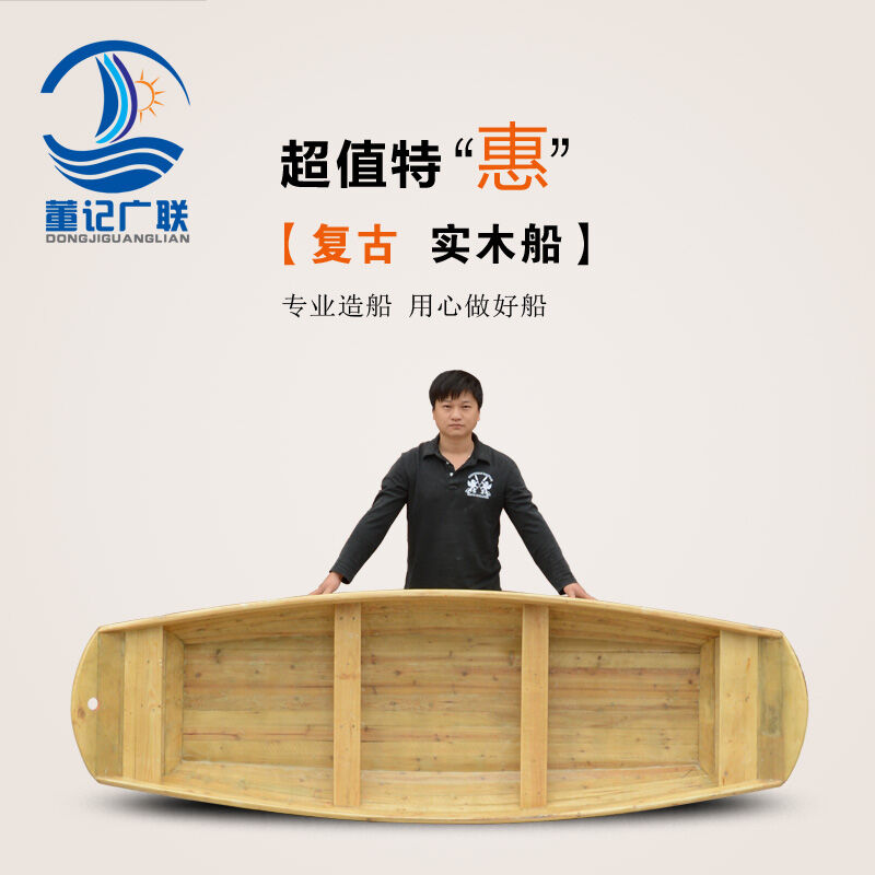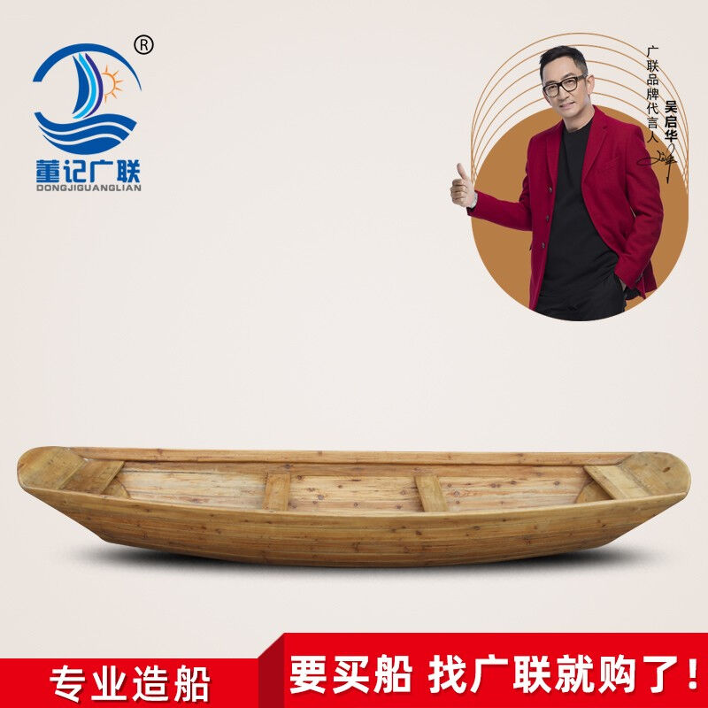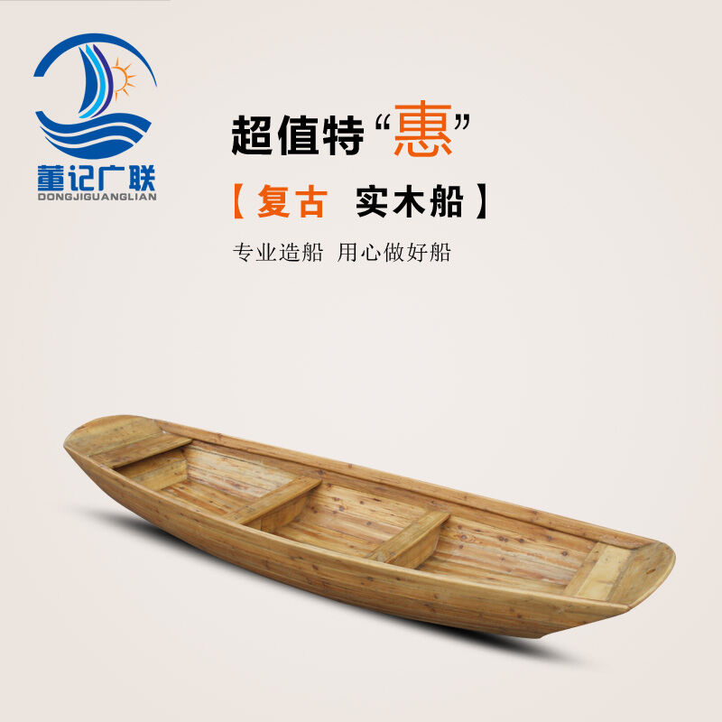 Dong Ji Guanglian 2 8 m wooden boat retro wooden boat breeding boat glass fiber bag wooden dining room with ornamental boat props
