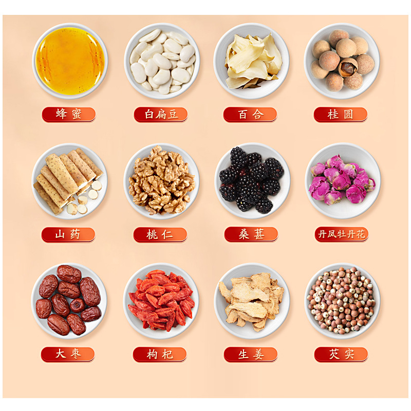 Honey Urky Powder Laurel Round Lily White lentils peony flower ginseng etc