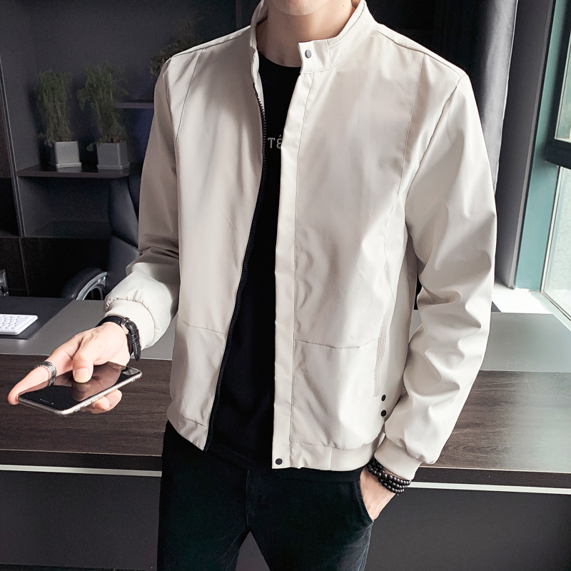 Spring and autumn 2021 new jacket men's Korean style trendy thin section slim handsome small collar jacket casual all-match