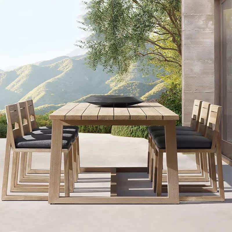 Outdoor villa model room teak dining table and chairs homestay high-end solid wood leisure long table small round table combination furniture