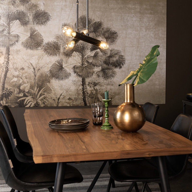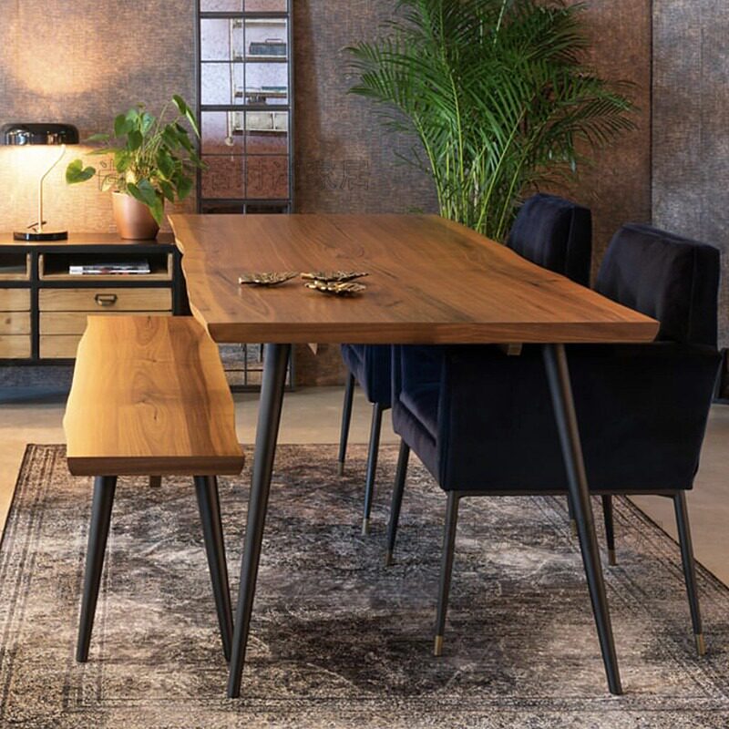 Nordic solid wood dining table household small apartment modern minimalist light luxury walnut color dining table log rectangular dining table and chair