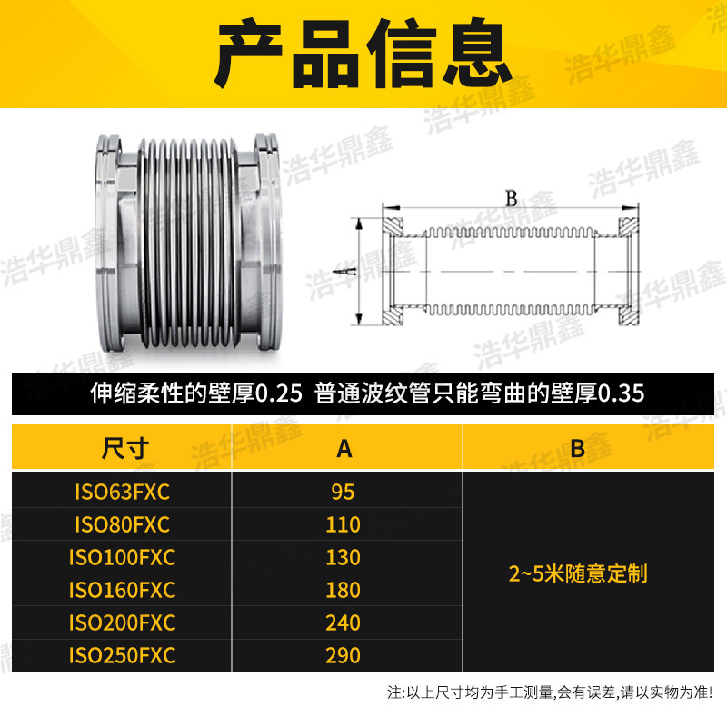 Vacuum bellows ISO250 flexible bellows stainless steel vacuum hose ISO fast-loading bellows