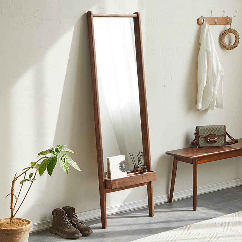 Nordic Day-style solid wood frame with explosion-proof full-body mirror black walnuts art full body removable wall-mounted full body mirror